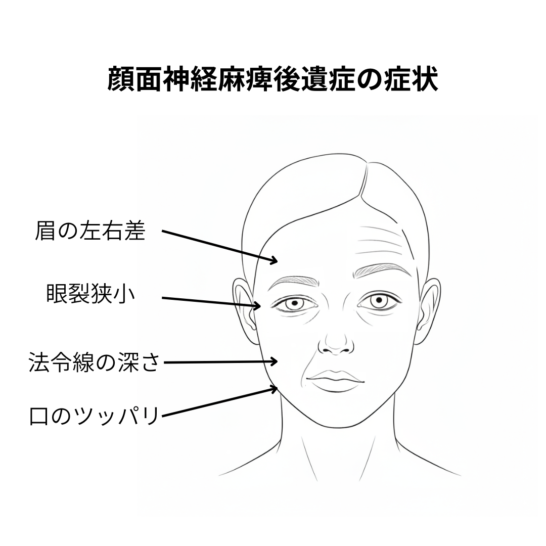 顔面神経麻痺後遺症でよく見られる代表的な症状
